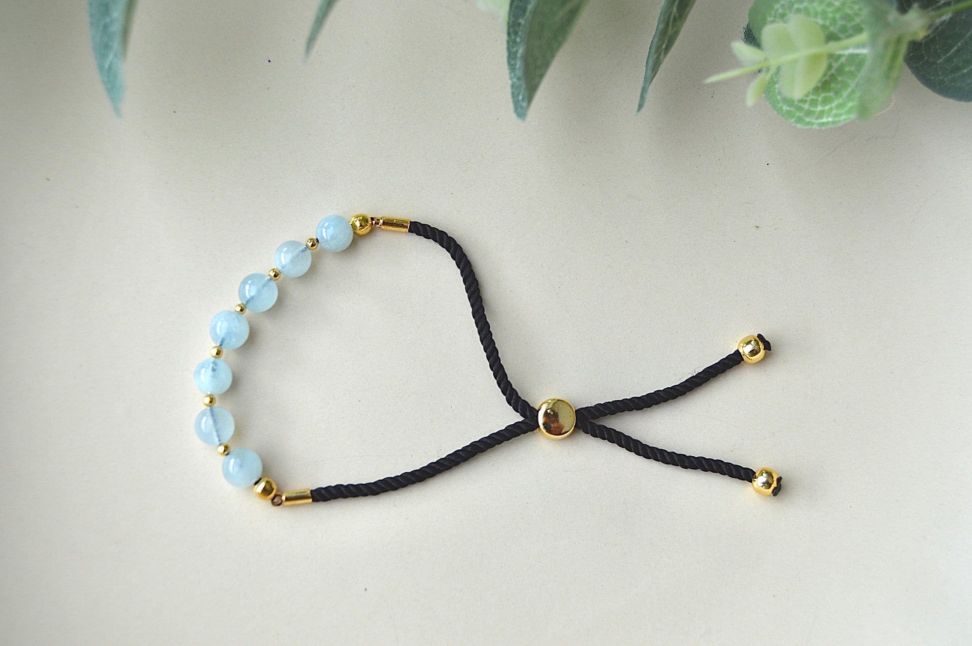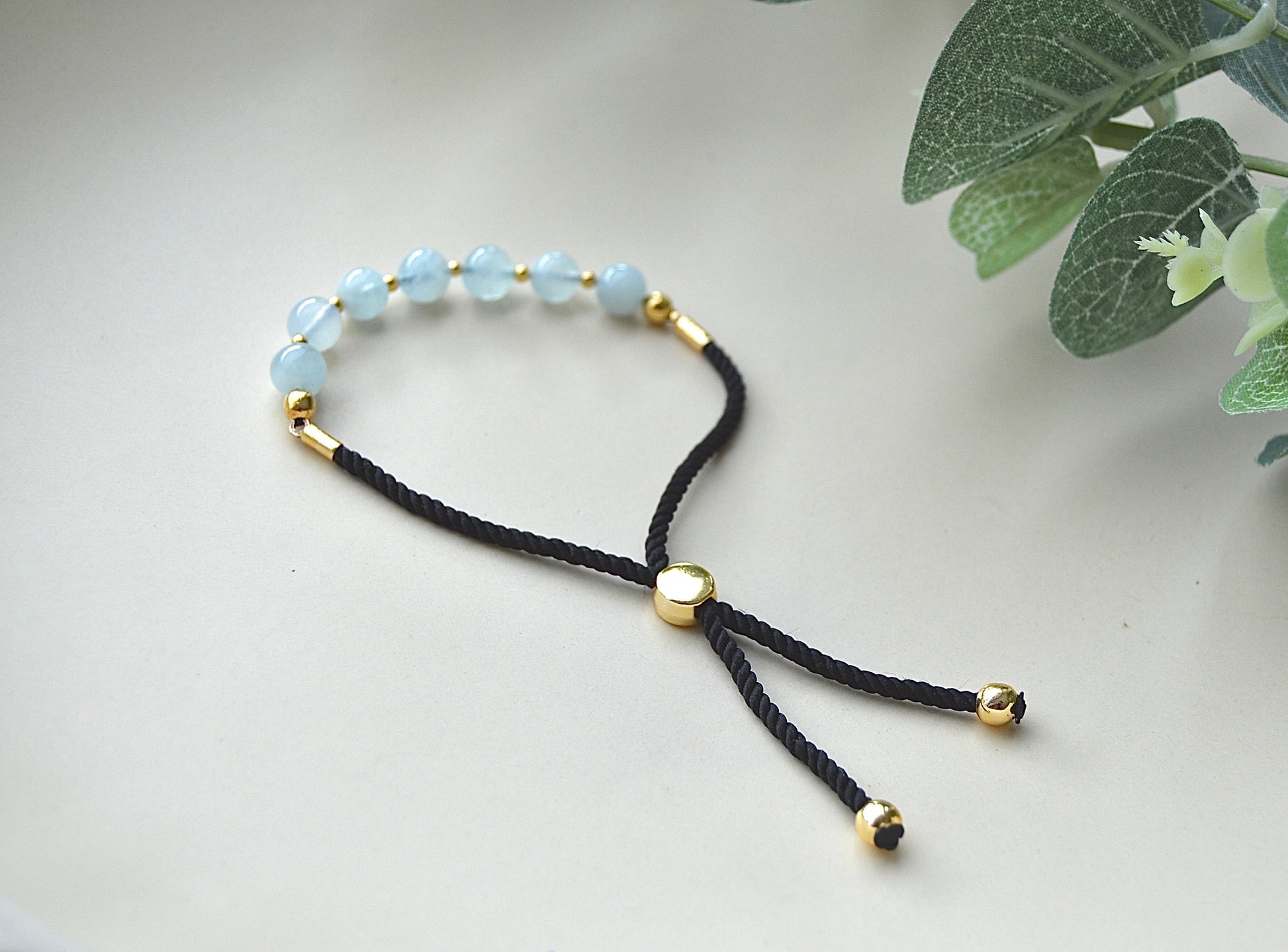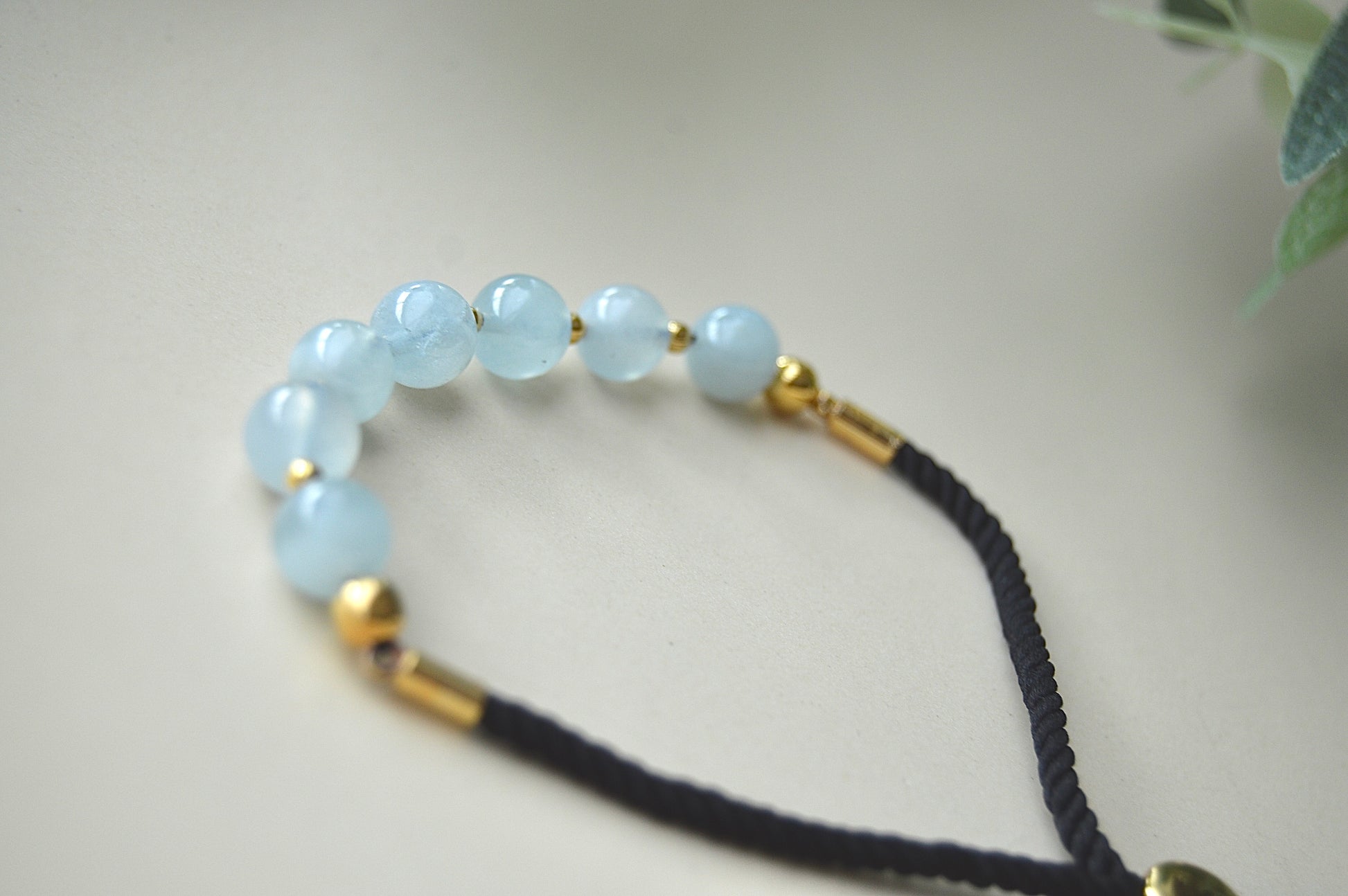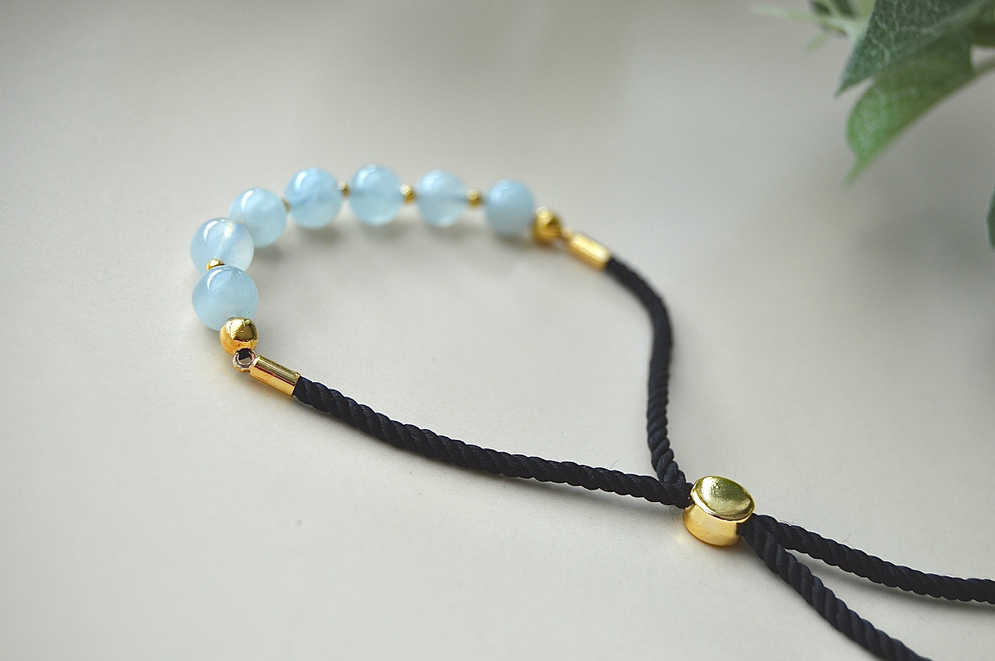 Akvamarin armbånd med justerbar snor – ro, kommunikasjon og indre balanse
