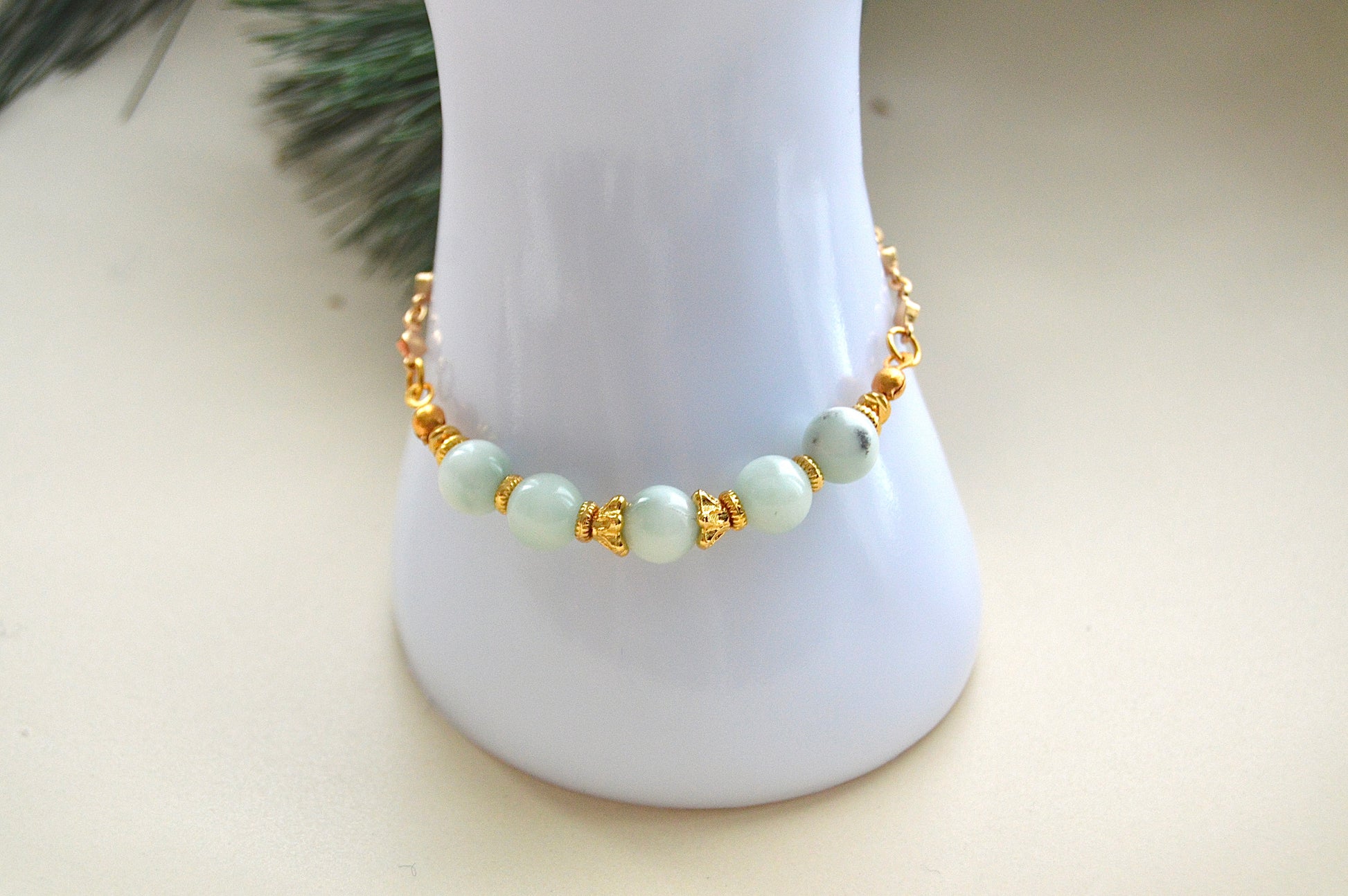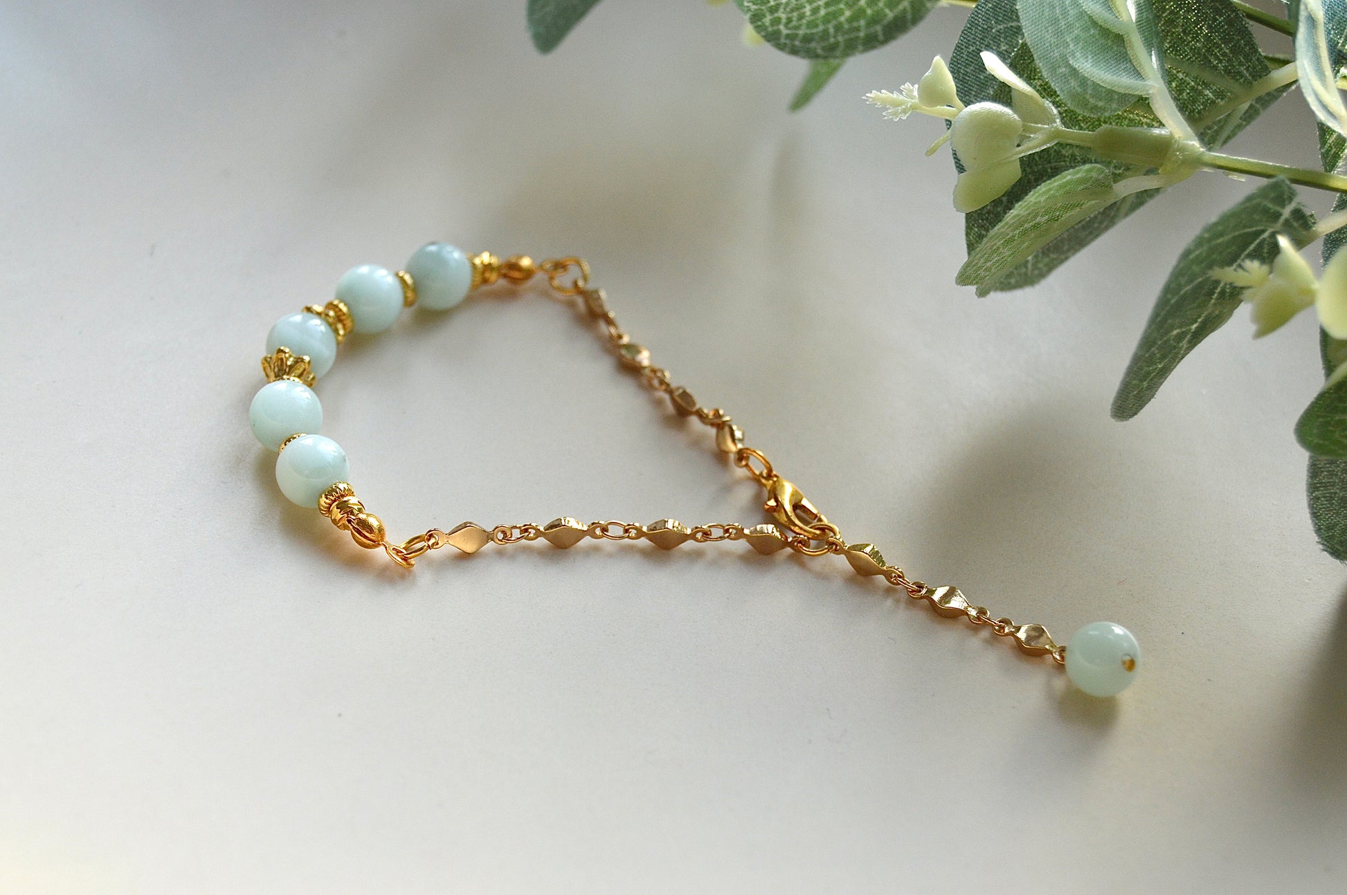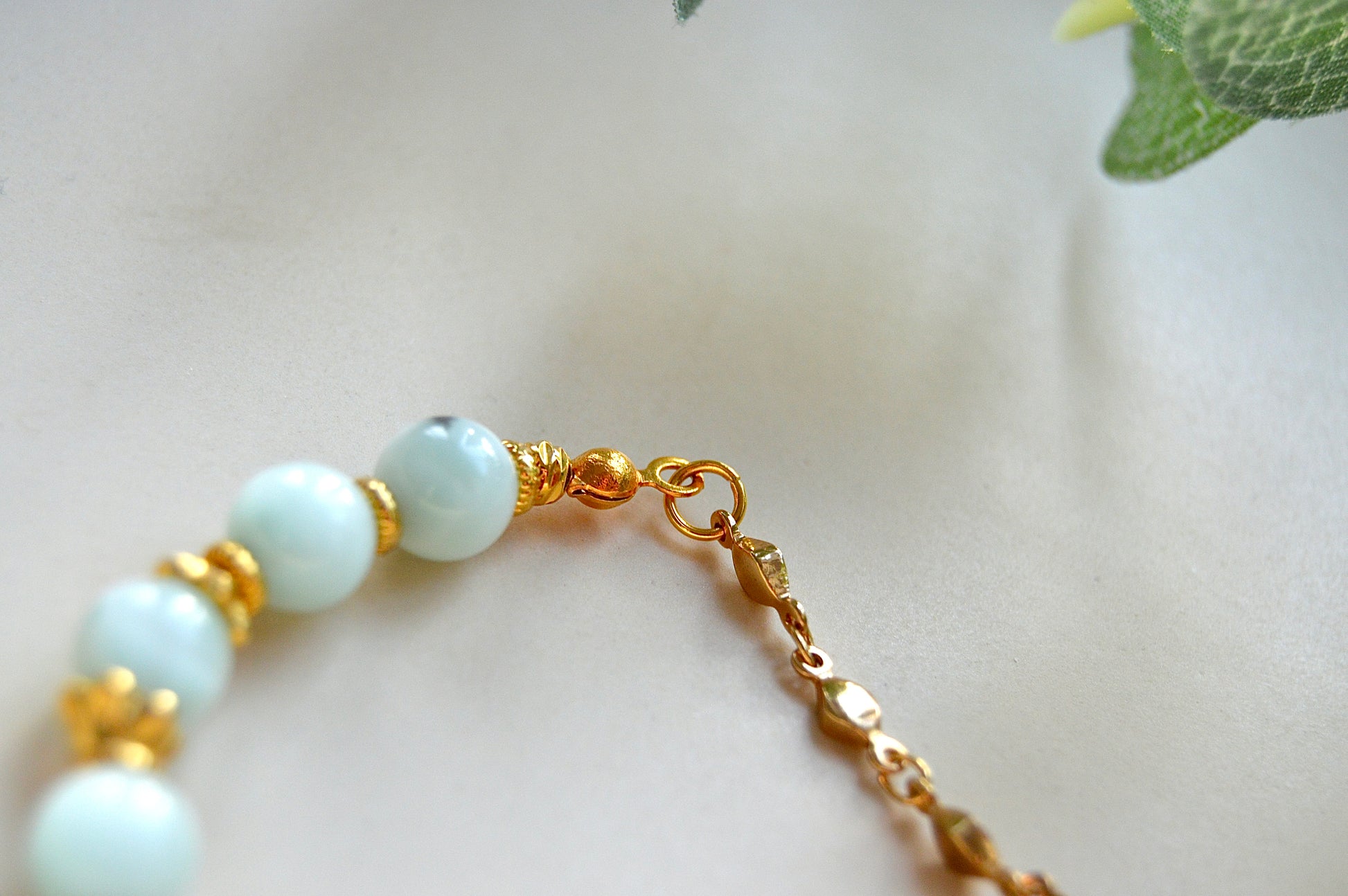 Larimar armbånd med gullbelagte detaljer - ro, balanse og avslappende energi