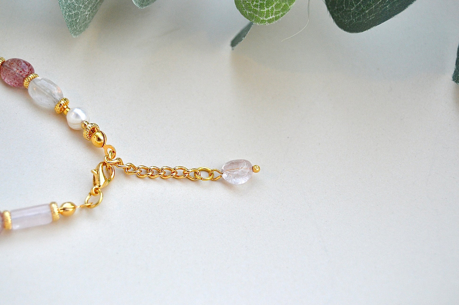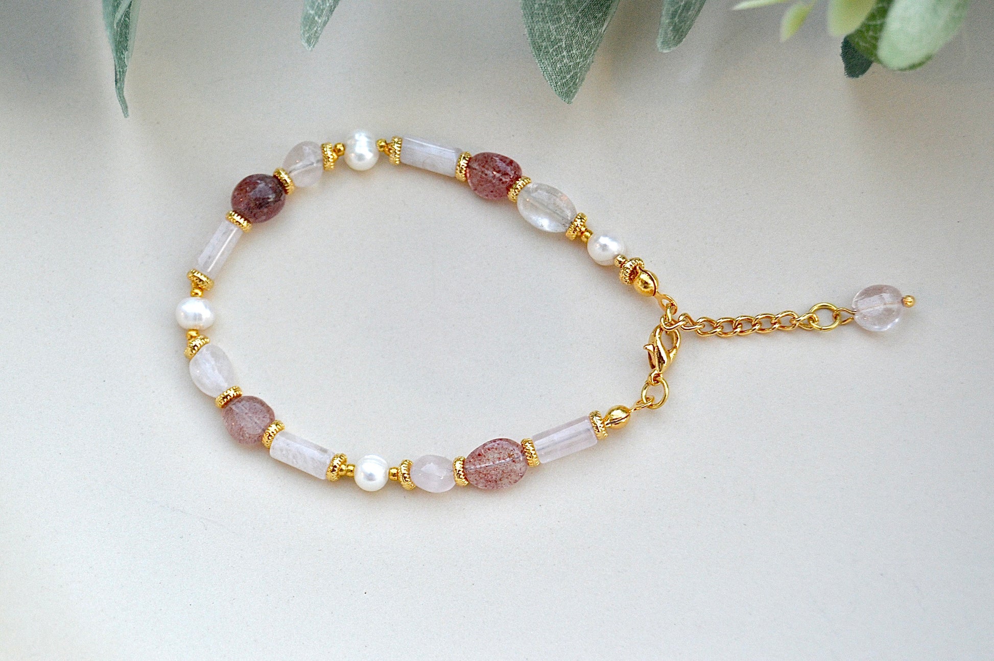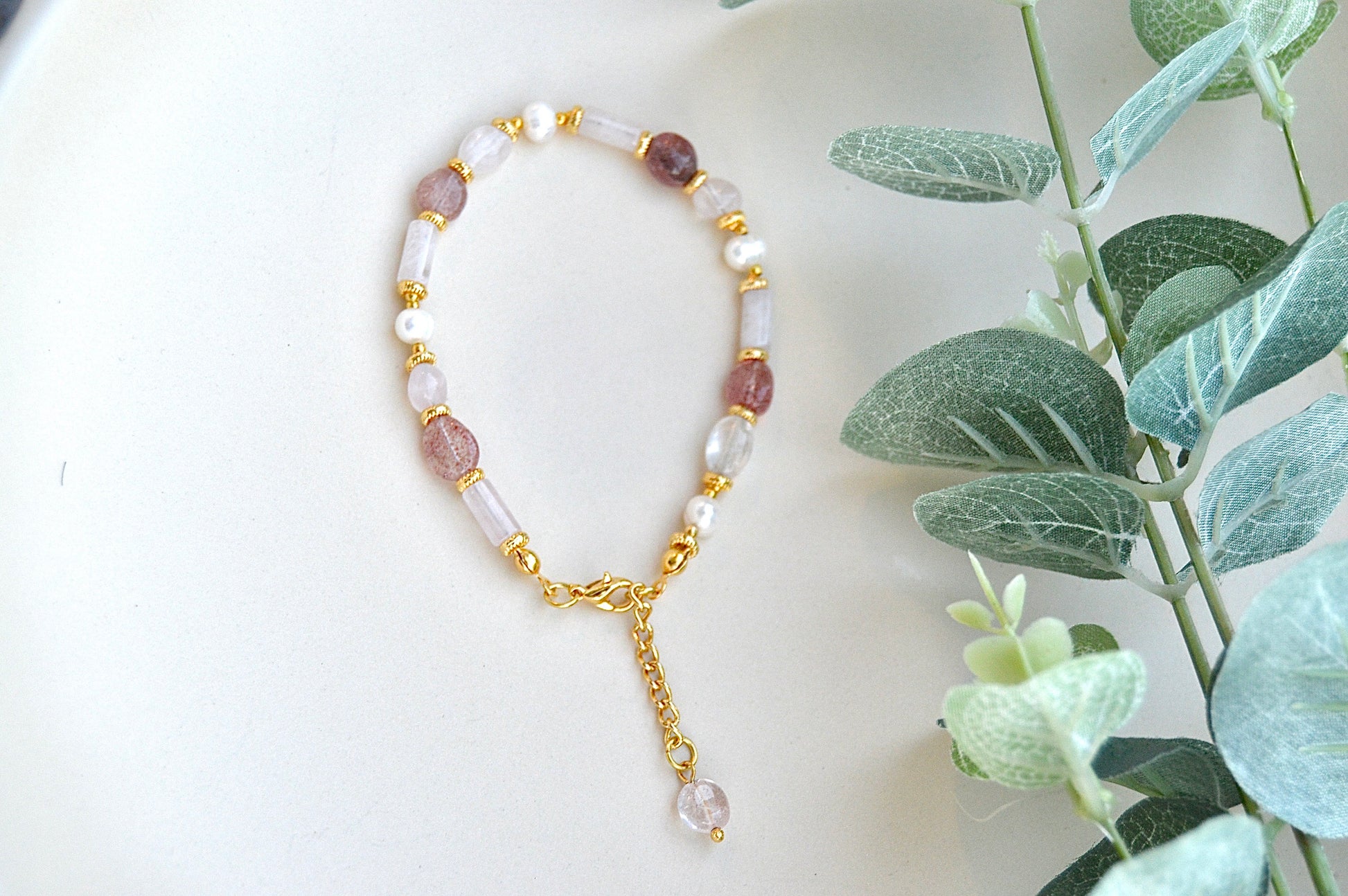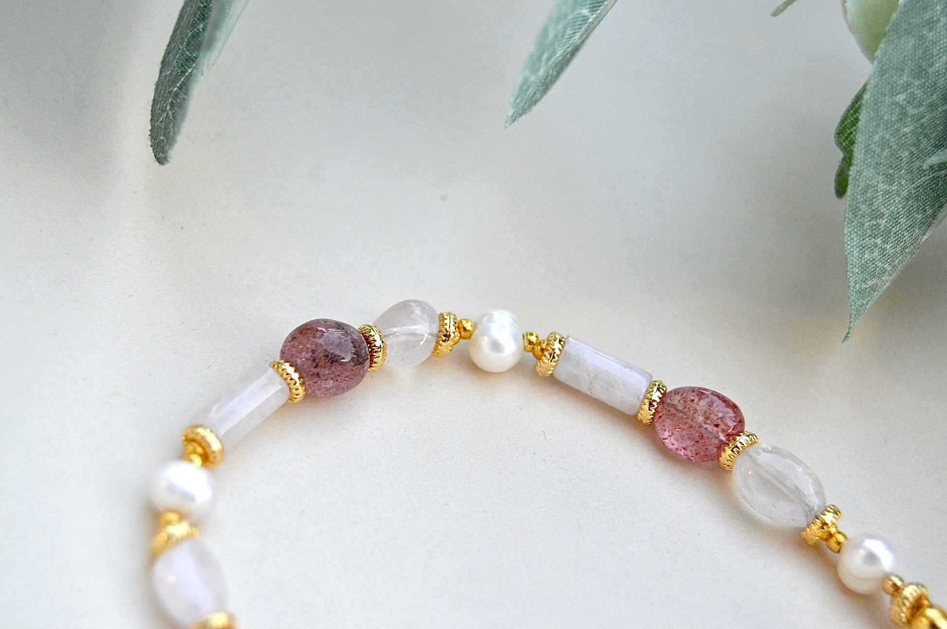 Rosenkvarts, jordbærkvarts og perle armbånd – kjærlighet, indre ro og feminin styrke