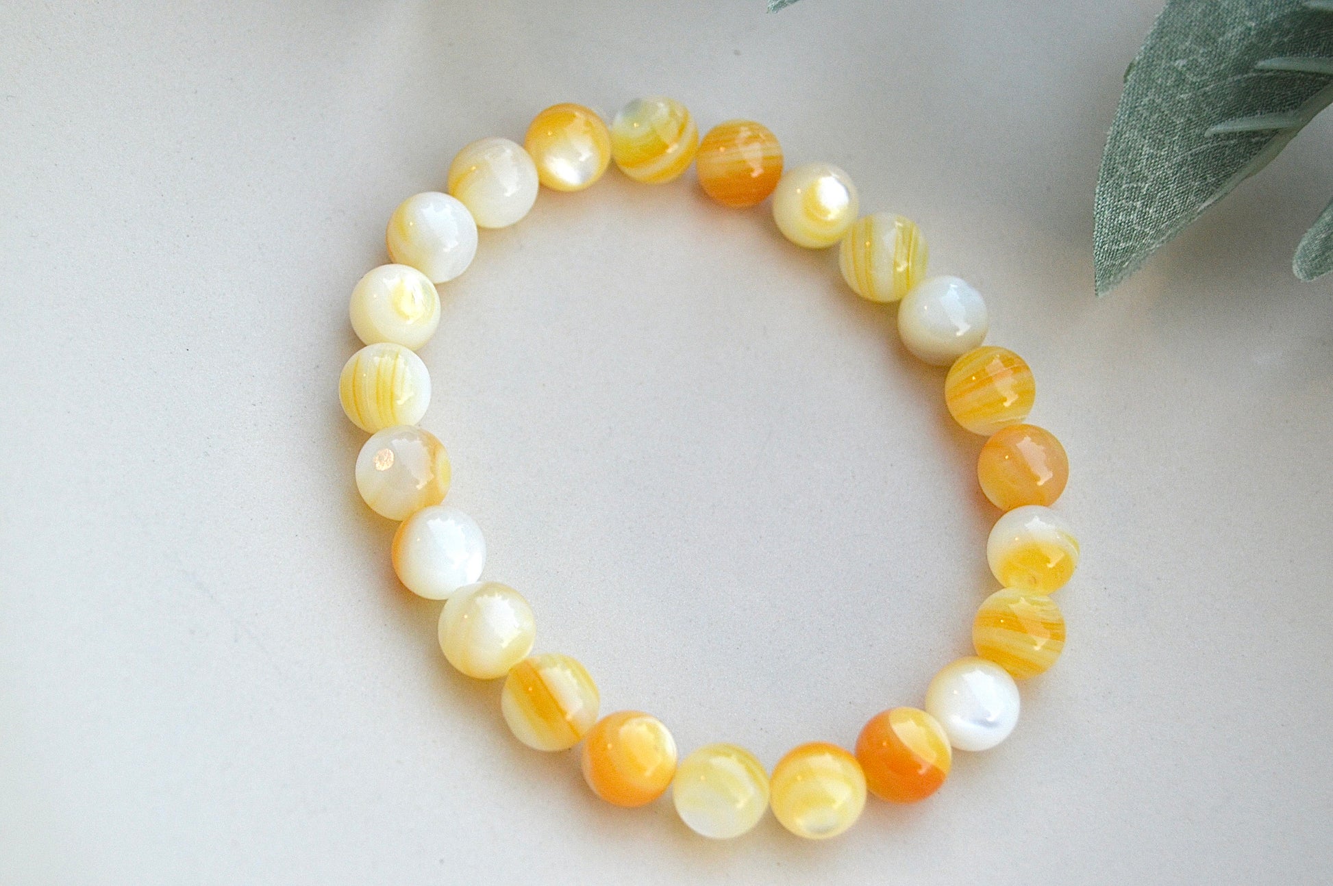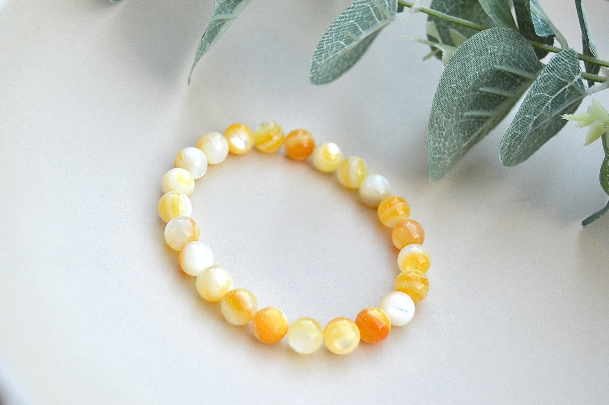 Et elegant armbånd laget med naturlig perlemor – kjent for sin myke glød og beroligende egenskaper. Perlemor forbindes med indre ro, beskyttelse og følelsesmessig balanse, og er et vakkert smykke som løfter både antrekket og sinnet.